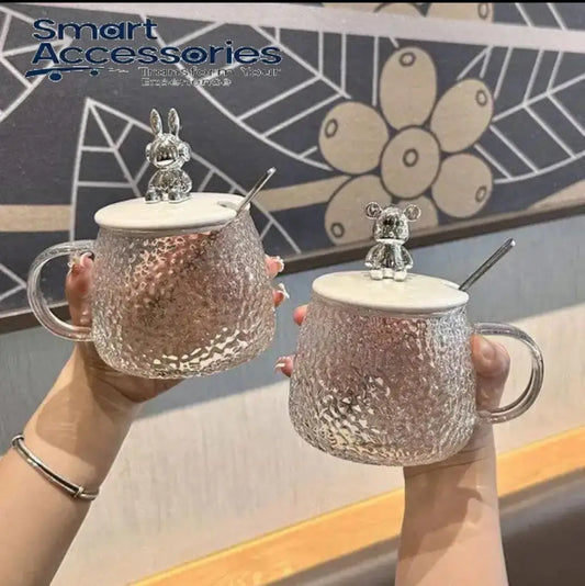 450Ml Cute Mug With Lid Spoon Heat-Resistant Glass Water Cup
