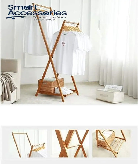 Foldable Wooden Coat Rack Coat Hanger Stand With Shoe Rack