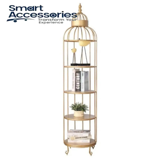 4 Layer Nordic Brass Cage Rack with Mirror Shelves