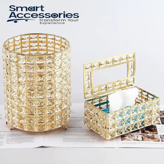 Golden Crystal Dustbin Tissue box Set