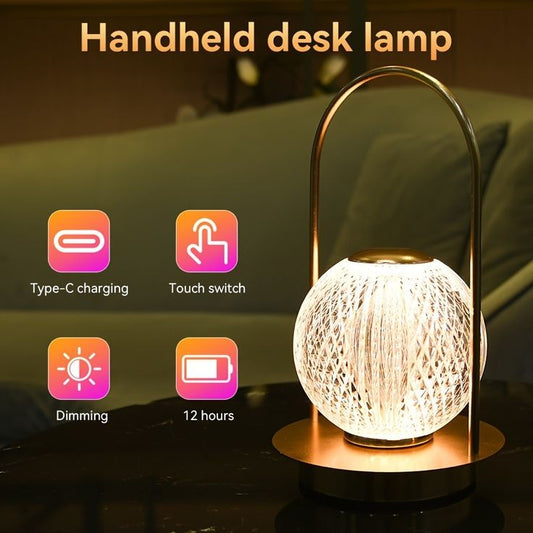 Round Touch Control Crystal Rechargeable Table Desk Lamp