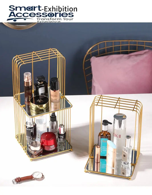 New Style Birdcage Makeup Organizer Metal Brass Cosmetic Organizer with Mirror Shelves square shape