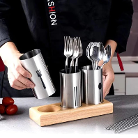 Flatware Organizer Caddy with Wood Base