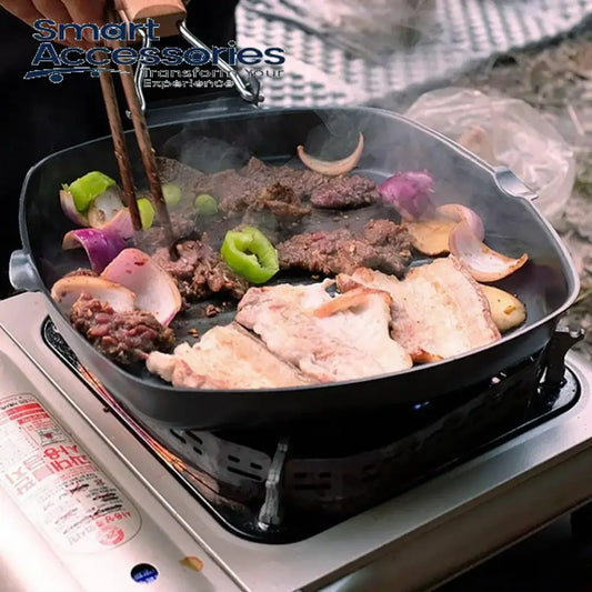 Nonstick Grill Pan with Folding Handle Striped Steak Frying Pan Square