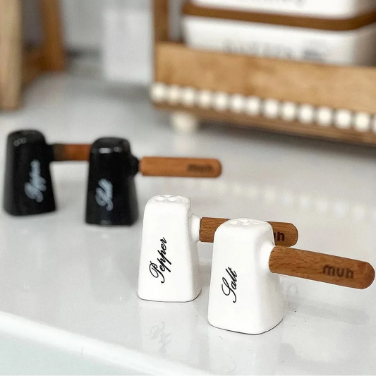 Salt Shaker Set With Wooden Handle & Bamboo Base