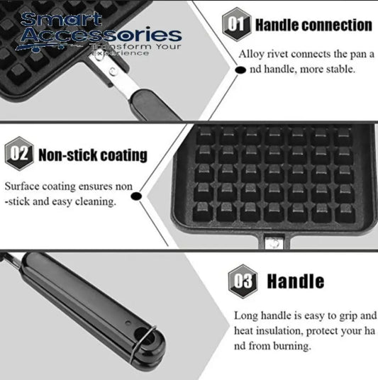 Waffle Mold DIY Waffle Baking Mold Iron, Cast Iron Snack Maker Stove Top Non-Stick