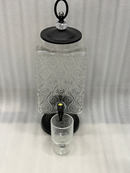 3L Patterned Glass Beverage Dispenser with 6 Cups
