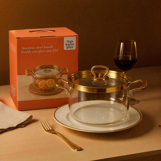 High Bayon Glass Stainless Steel Handle Double Ear Glass Pot 2.5L Heat Resistant