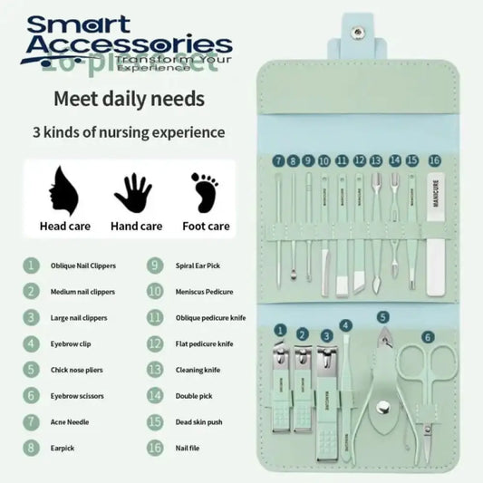 Set Of 16 Nail Clipper, Stainless Steel Manicure Kit With Folding Bag, Professional Pedicure Beauty Tools Set, Cuticle Trimmer Manicure Scissors Nail Care Ingrown Toenail Removal Clippers, Foot Care Tool Nail Clippers Kit