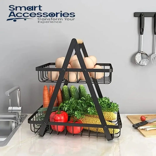 2-Tier Countertop Fruit Basket Storage, Vegetable Rack for Kitchen, Black