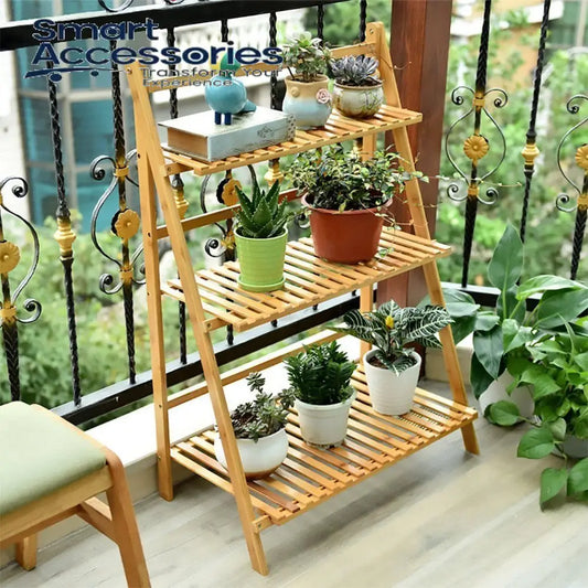 3 Layers Foldable Wooden Flower Plant Pots Rack