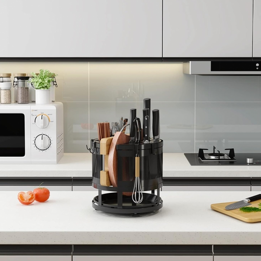 360° Rotating Storage Rack Kitchen Cutlery Organizer