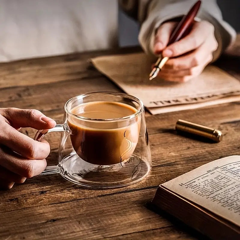 Upgrade your coffee experience with our 4-pack of Glass Coffee Mugs. Featuring a 200ml capacity, double-walled insulation, and heat-resistant glass, these mugs keep your drinks at the perfect temperature. Perfect for both hot and cold beverages, they make a thoughtful and practical gift. Plus, they're dishwasher safe for effortless cleaning.
