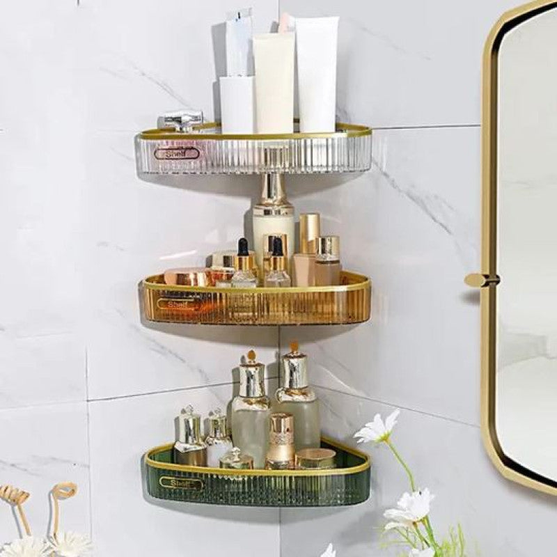 Acrylic Luxurious Style Wall Mounted Corner Organizer – No-Drill Floating Vanity Shelf