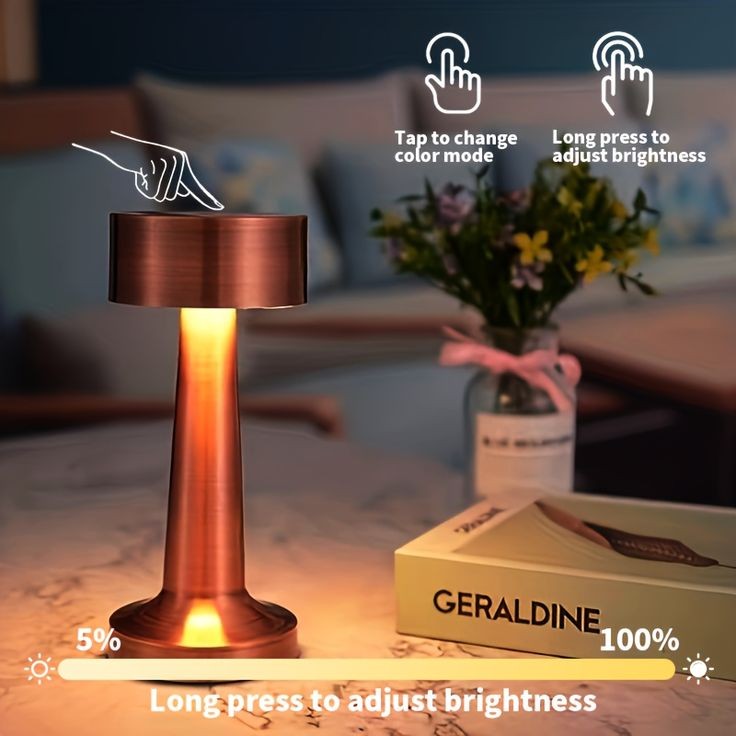 Illuminate your home, restaurant or workspace with our Ambient Wireless Touch Lamp in a stunning Golden, white and warm hue. Crafted with metallic elegance, this LED desk lamp offers three light intensities, controlled effortlessly by a tactile touch switch. Elevate your lighting experience with style and functionality.