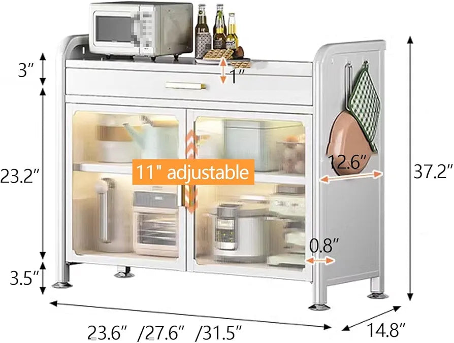 The spacious drawer and two-tier storage shelves make it ideal for organizing kitchen essentials, small appliances, or decorative pieces. Whether used as a coffee station, microwave stand, or compact storage console, the Binca Luxe ensures a clutter-free, beautifully arranged space.