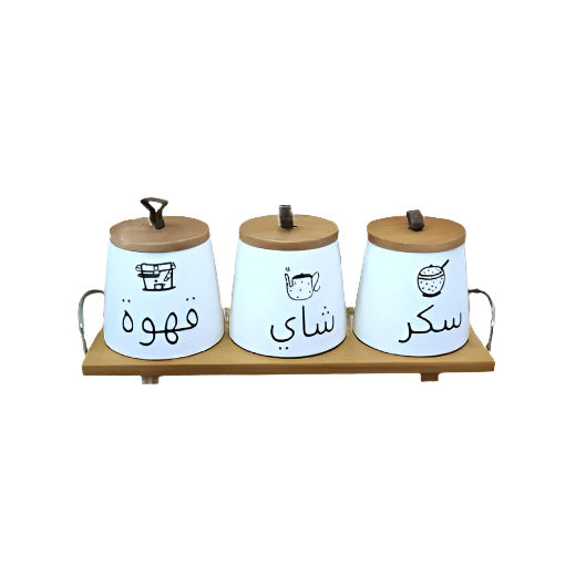 Ceramic Jar Set of 3pcs With Wooden Lid Tray: