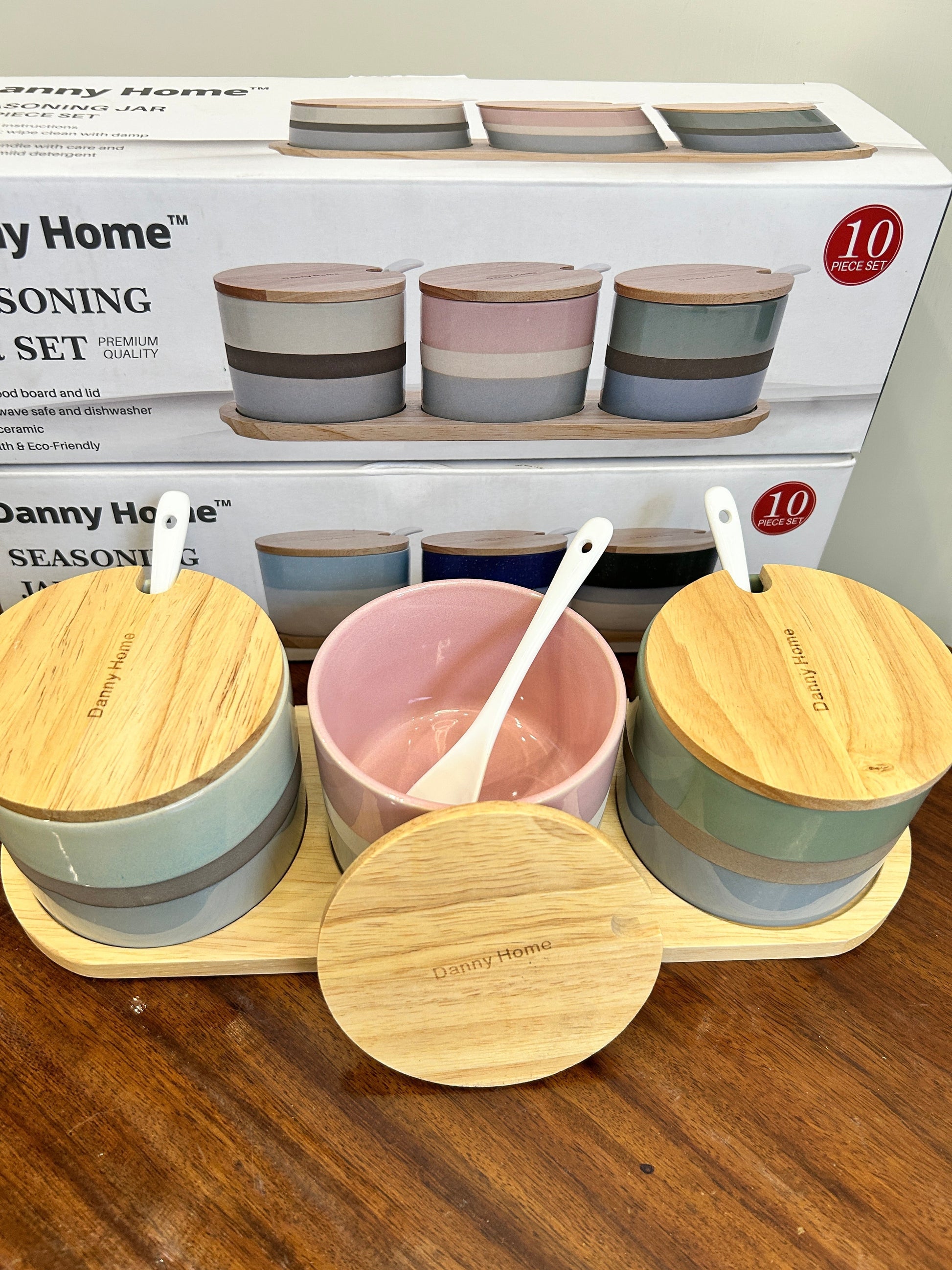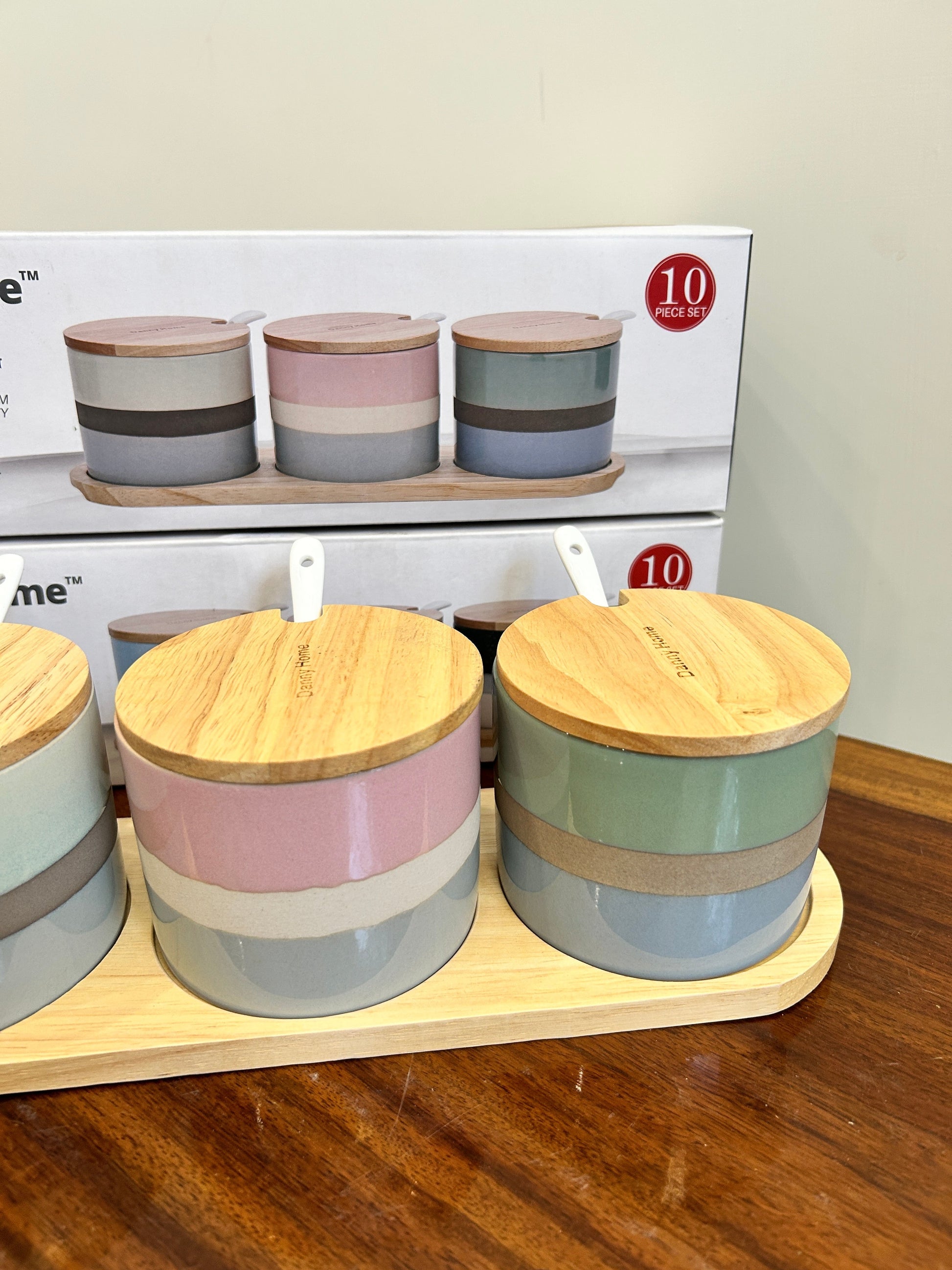 ✅Material: Porcelain Ceramic Jar & Wooden Lid