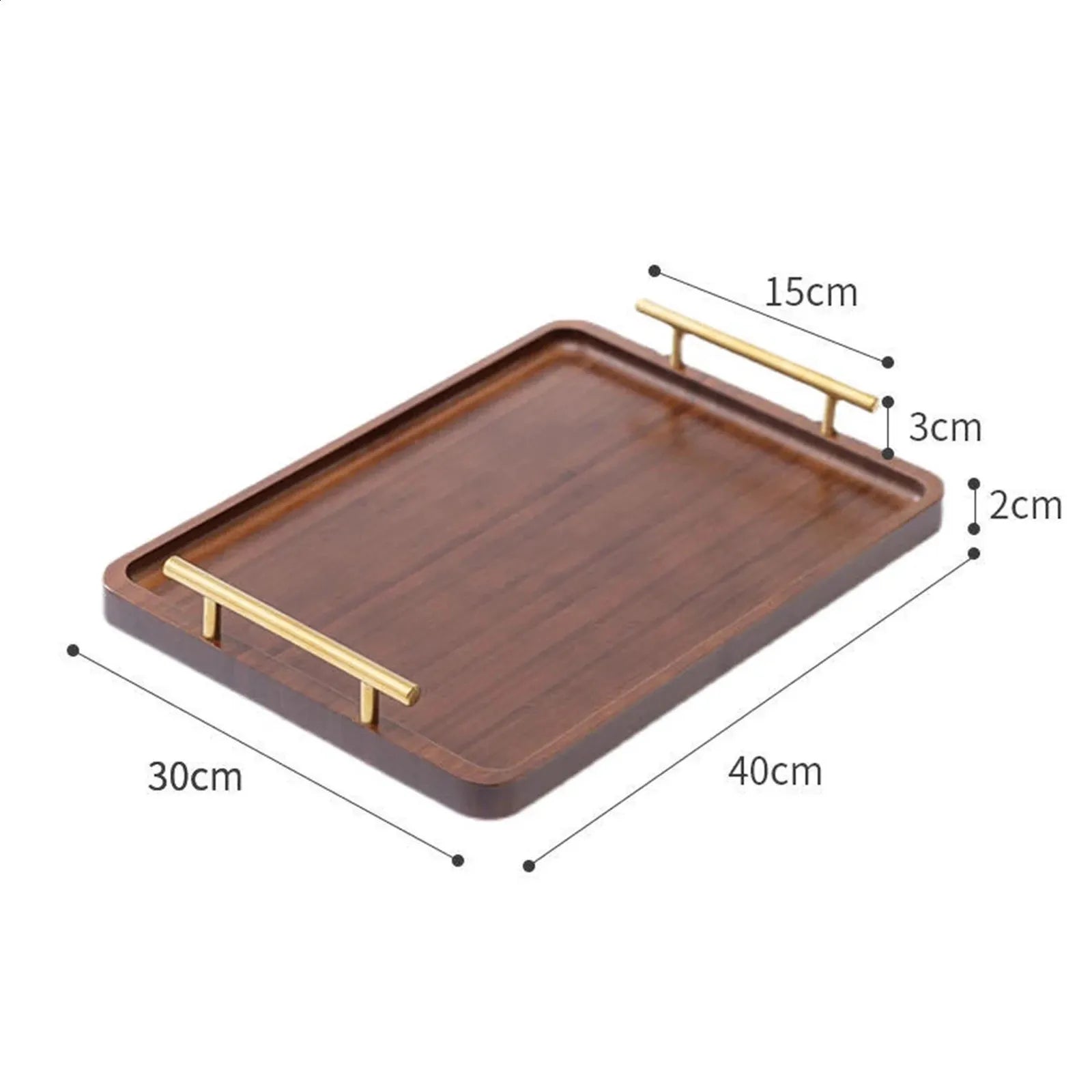 Crafted from durable wood, this serving tray features sturdy metal handles for easy and secure transport of drinks and snacks, making it a reliable drink serving tray for everyday use.