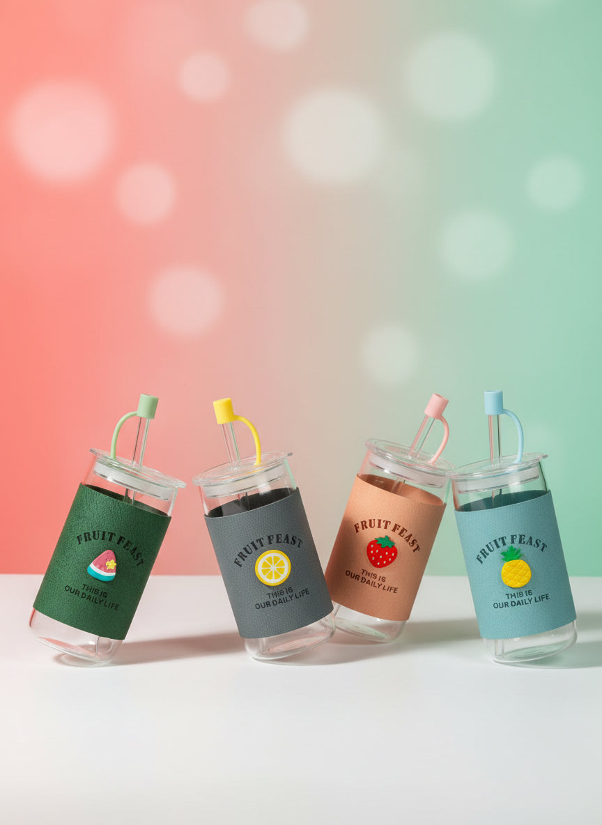 Fruit Feast Glass Tumbler With Bamboo Lid