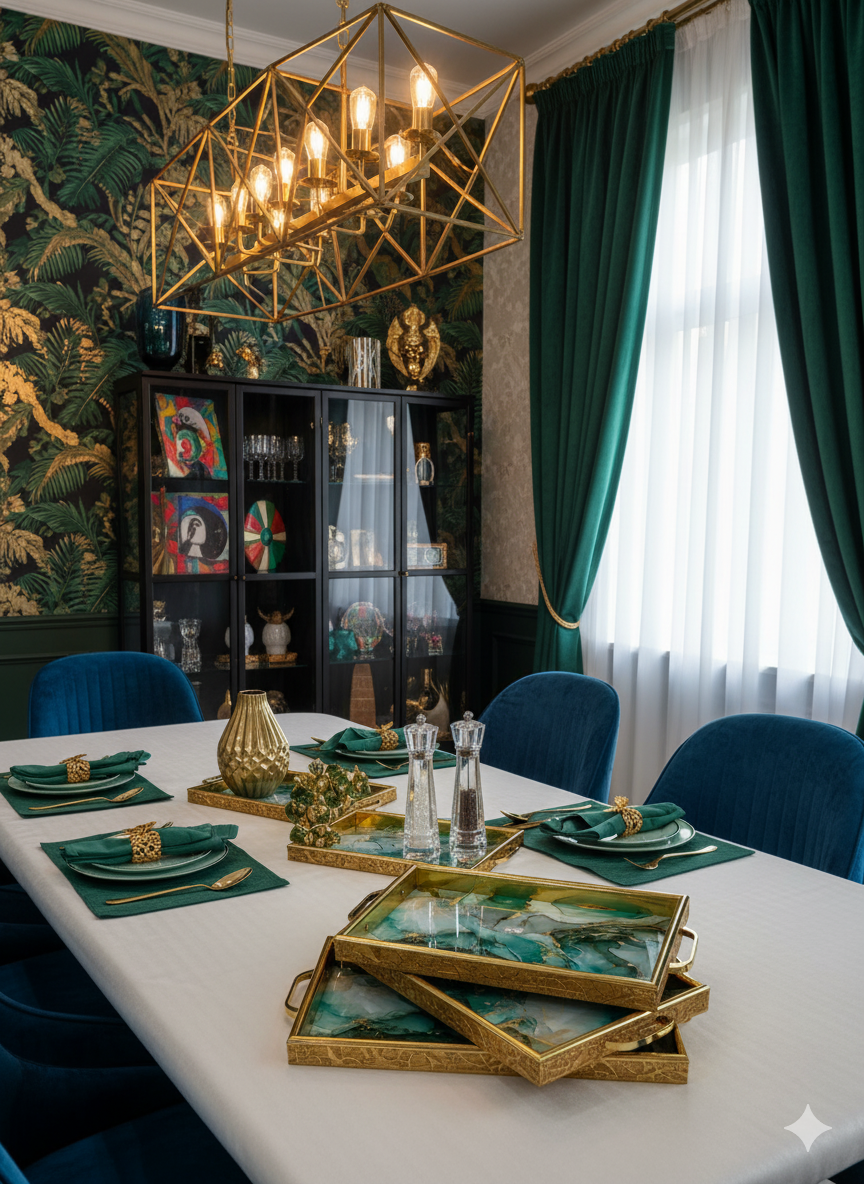 Use: Ideal for serving beverages, displaying luxury items, or as a vibrant decorative centerpiece on a coffee table or vanity.