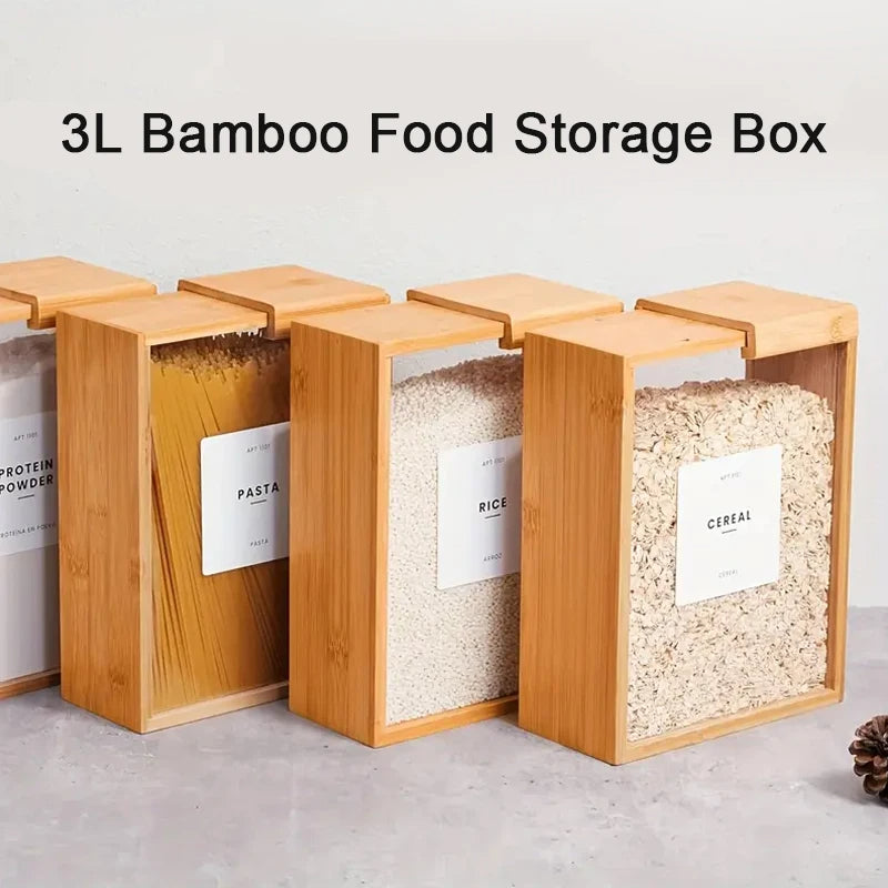 Natural Bamboo Grain Storage Box – Airtight Kitchen Organizer
