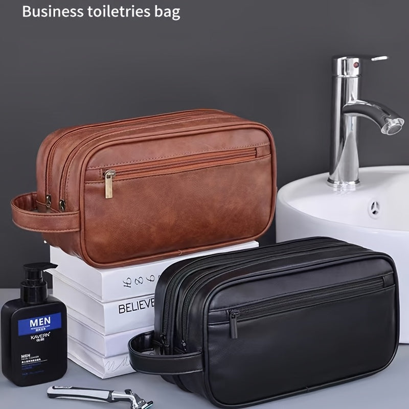 PU Leather Toiletry Bag Waterproof, Hanging Washbag for Travel, Essential Toiletries Organizer.