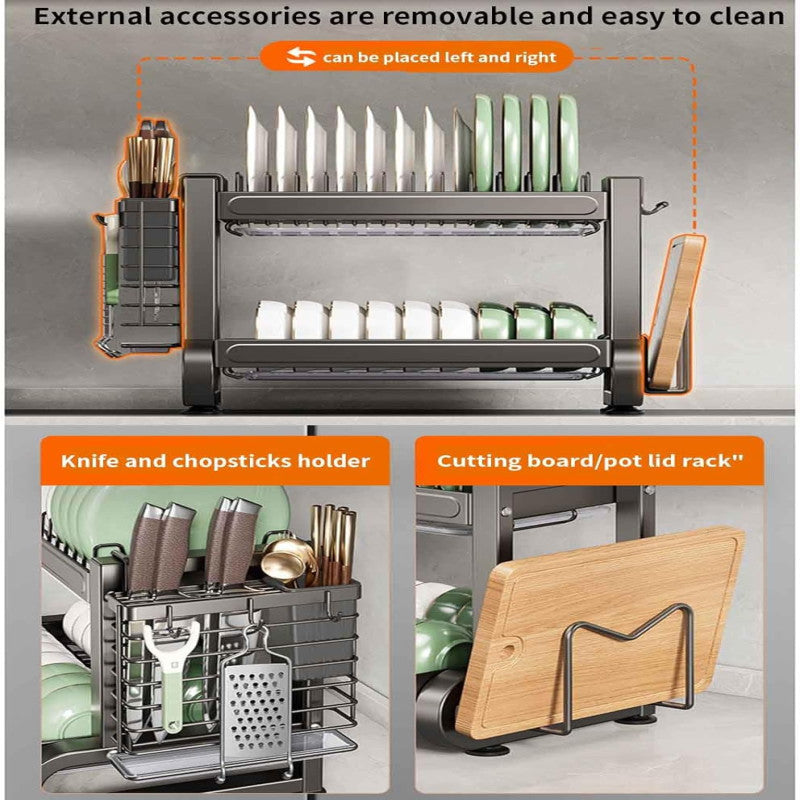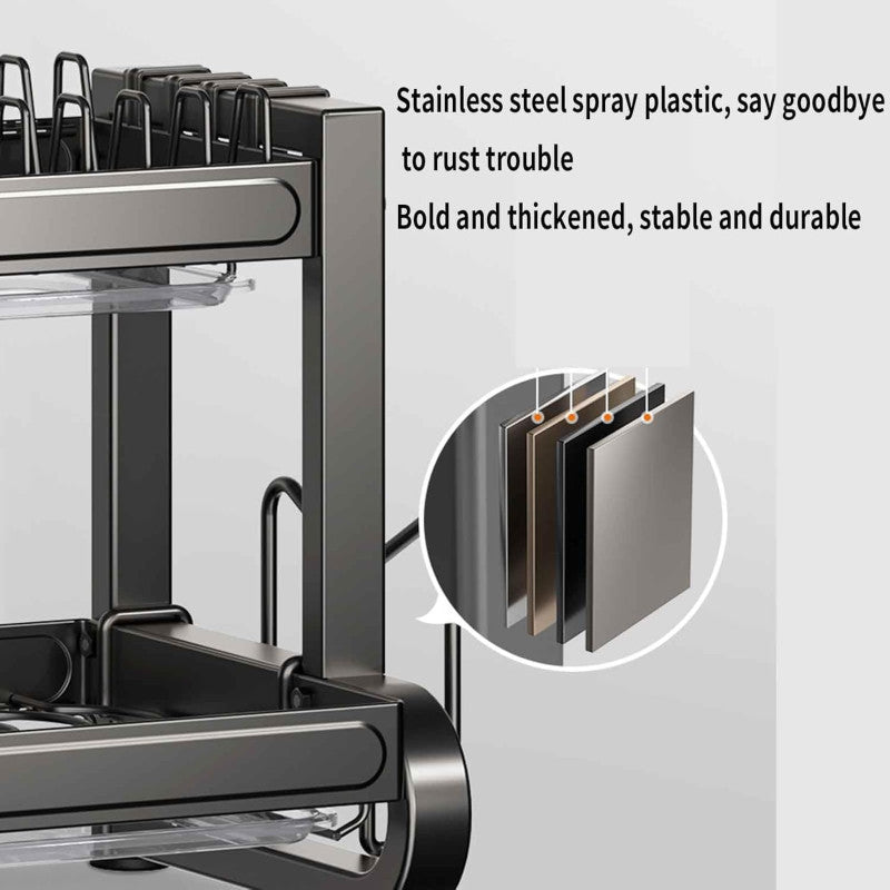 Convenient Water Drainage: Each layer features built-in drainage trays, allowing dishes to air dry and preventing water accumulation, ensuring a clean and dry countertop