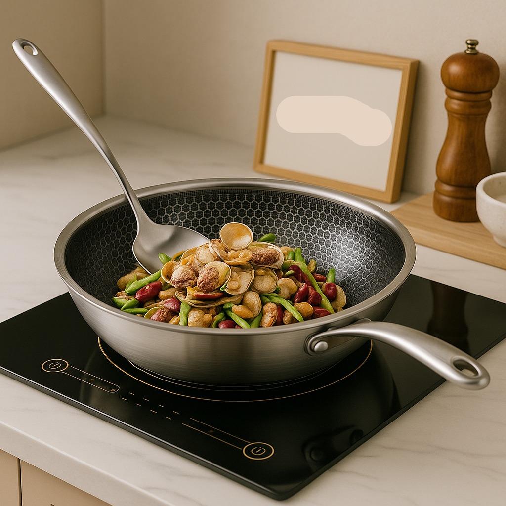 Stainless Steel Wok Pan – Non-Stick Honeycomb Design with Handle